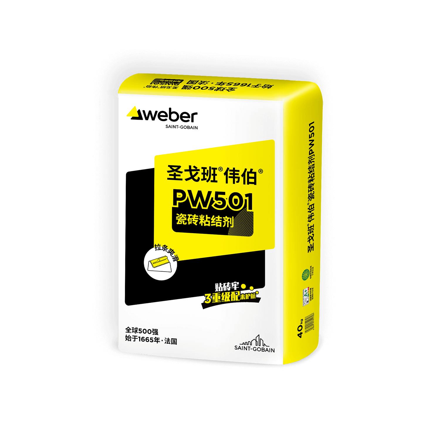 圣戈班?偉伯?瓷磚粘結(jié)劑 PW501是水泥基聚合物改性瓷磚粘結(jié)產(chǎn)品,可滿足室內(nèi)廚房、衛(wèi)生間以及其他公共場所釉面磚和陶磚的粘貼。采用圣戈班?偉伯?三重級(jí)配配方,具有高保水、高滿漿、高強(qiáng)度、不易空鼓等特點(diǎn),另外施工手感佳,拉條爽滑,更通過法國室內(nèi)環(huán)境檢測A+認(rèn)證和十環(huán)認(rèn)證,全面有效的保護(hù)家居裝飾和家庭健康。